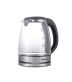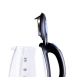Объем - 1.8 л Материал корпуса - Жаропрочное стекло Индикатор уровня воды - Да Автоотключение - Да Вращение на подставке - Да, 360 градусов Тип нагревательного элемента - Скрытый нагревательный элемент Отсек для хранения электрошнура - Да Длина электрошнура - 75 см Внутренняя подсветка - Да, синяя светодиодная подсветка Напряжение (В) и частота (Гц) - 220В/50Гц Мощность (Вт) - 1500 Вт Защита от поражения электрическим током - Класс I Размер изделия (ШхВхГ) - 228 х 244 х 170 мм Комплектация Чайник, база питания, руководство по эксплуатации, гарантийный талон Отключение при закипании, снятии, отсутствии воды - Да Вес нетто - 0.96 кг