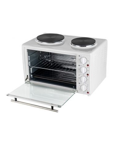 Комплектация: Печь, решетка для гриля, противень, вертел, ручка для снятия вертела, ручка для снятия противня/решетки, инструкция по эксплуатации, гарантийный талон